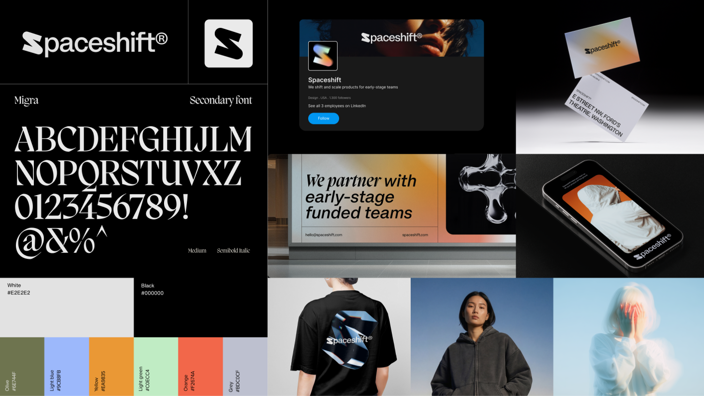 The branding seeks to balance professionalism with informality. The main objective is to showcase Spaceshift as a top solution to work with, while ensuring the brand remains approachable and does not appear overly sterile.